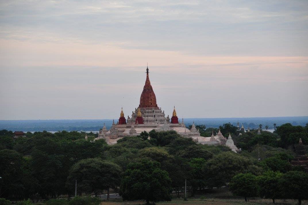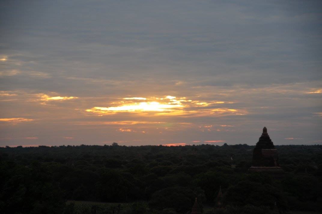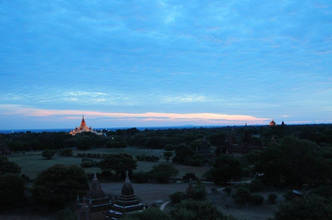 放好行李,計程車司機便載著我們來看日出,這裡是看日出和日落的勝地-瑞山陀佛塔,要爬上塔頂才能看到這麼美的景色。放眼望去眼底盡是各個大大小小的佛塔,裡面都有供著幾尊佛像呢。