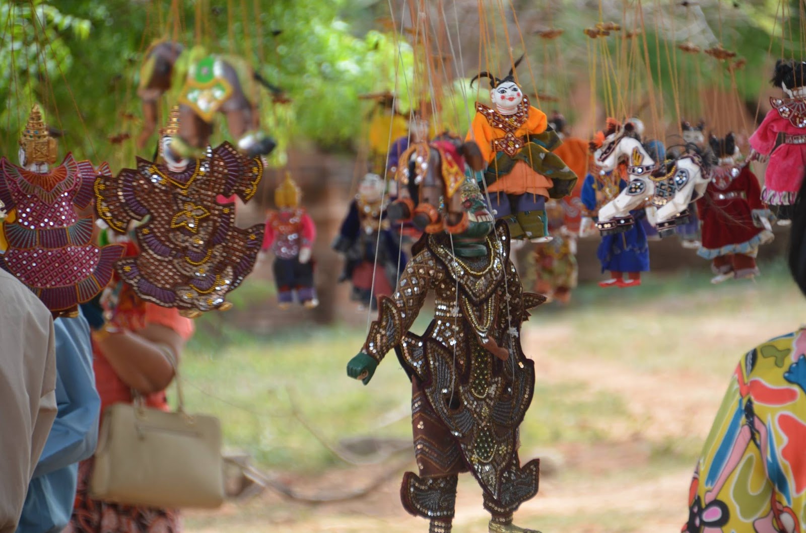進入塔門後就看到樹上吊著各式各樣的木偶娃娃,木偶們隨著風在樹下飄盪著,看起來十分的恐怖。