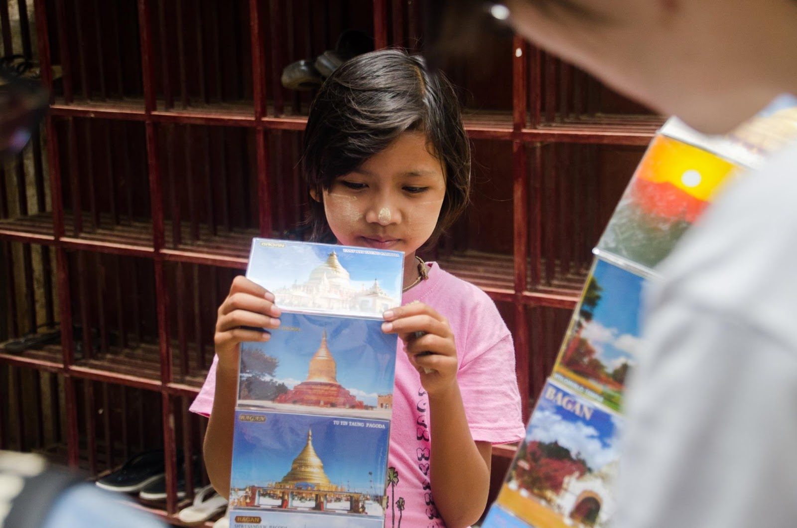 看完佛像後,這位小妹妹實在太可愛了,古歌便向他購買了十張明信片,一組買下來對我們來說其實沒有多少錢,卻是他們一人的一日平均所得,很嚇人的。
